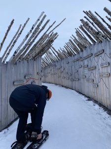 The way to Narvik is a broken down in a train to Fauske, then a bus to Narvik, which hops on the Bognes-Skarberget ferry and passes along incredible fjords and lakes the whole way, and gives you a magnificient view of the Lofoten Islands in the distance. We saw several fish houses, where Norwegians hang stockfish (hjell in Norwegian) to dry them up before selling them. It’s considered one of Norway’s culinary treasures!